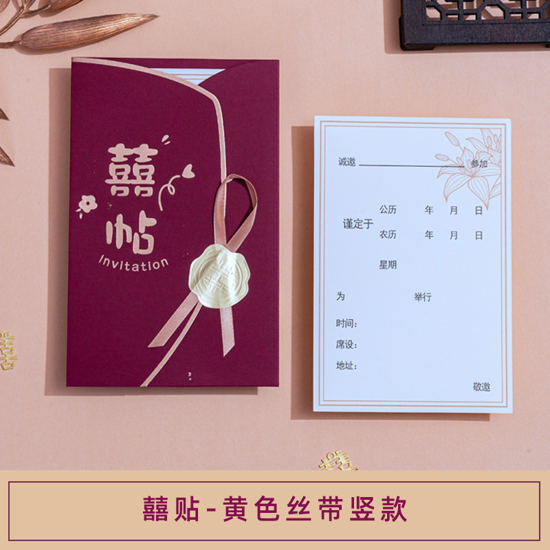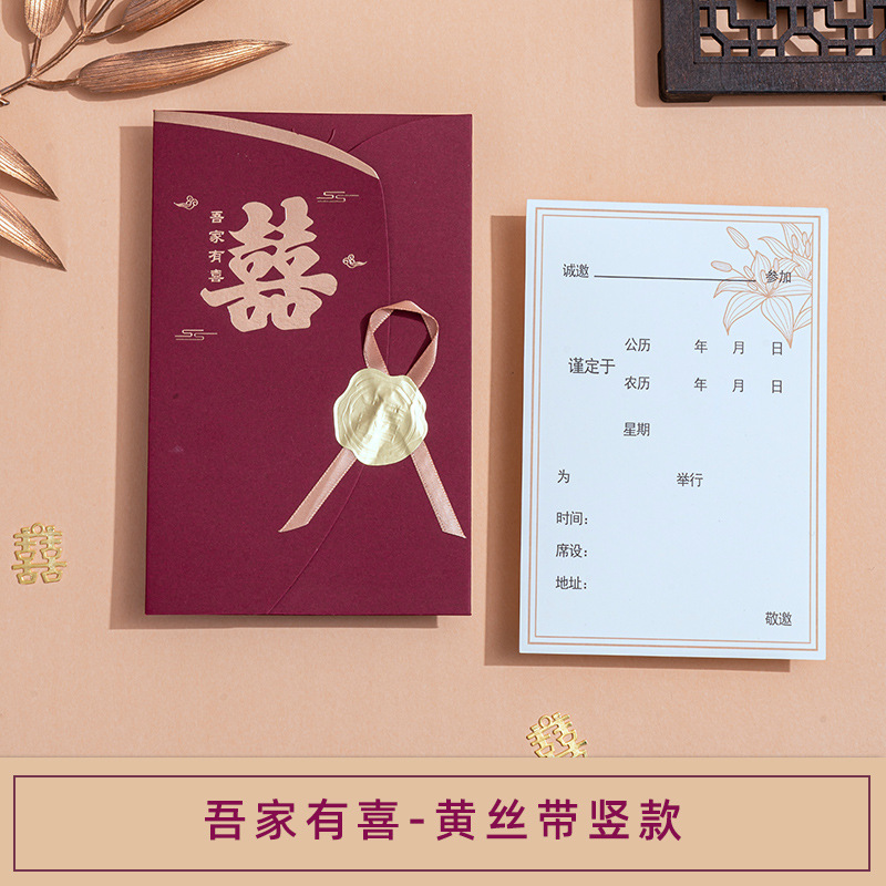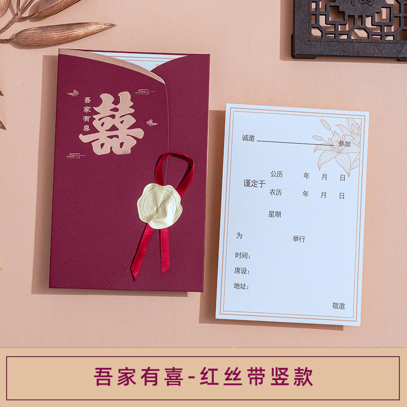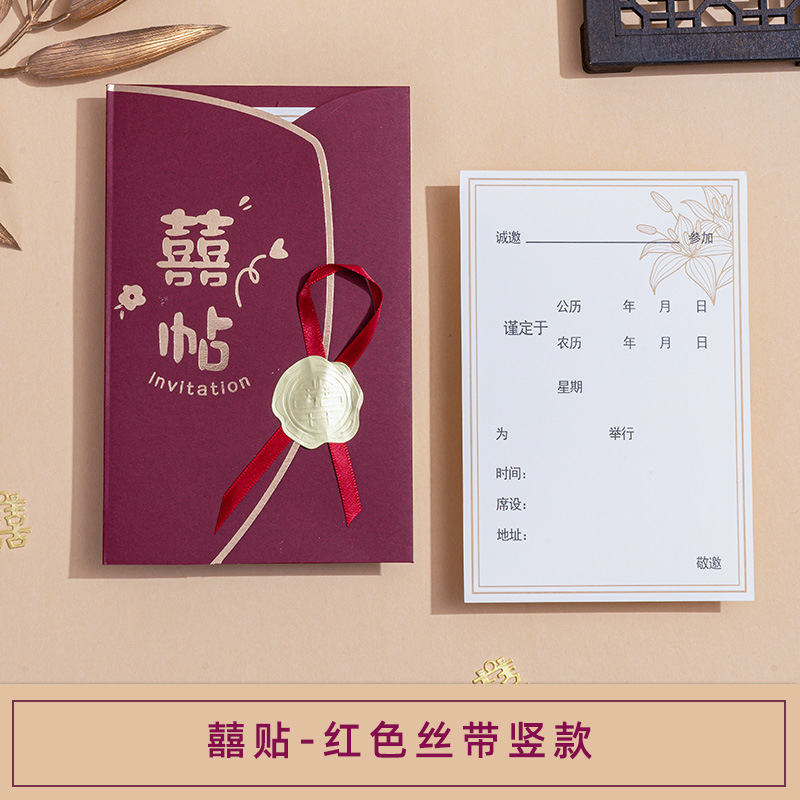 Wedding Invitation, Chinese Style, Minimalist and Unique Wedding Banquet, Wine Red, Simple Ribbon, Lucky Postage Stamps, Wholesale