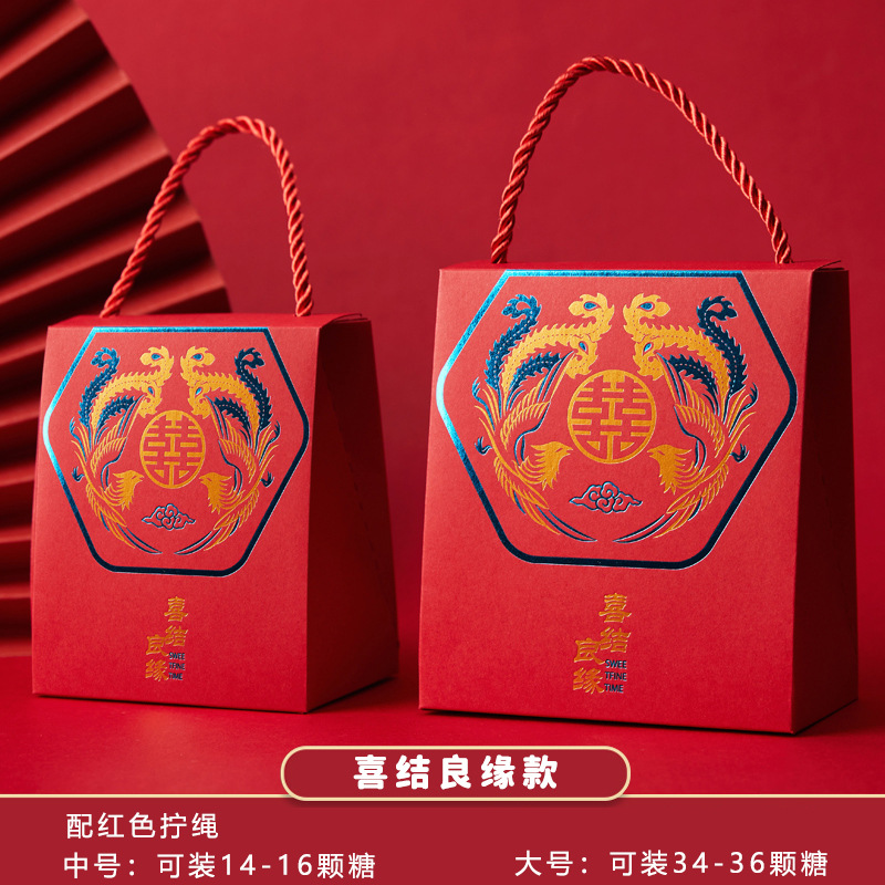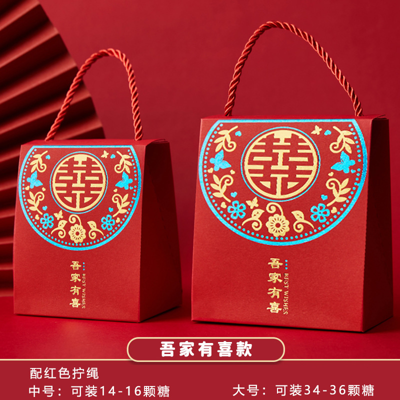 2024 New Chinese Style Wedding Supplies Chinese Style Happy Candy Hand-held Box Wedding Candy Box Candy Favor Box Batch