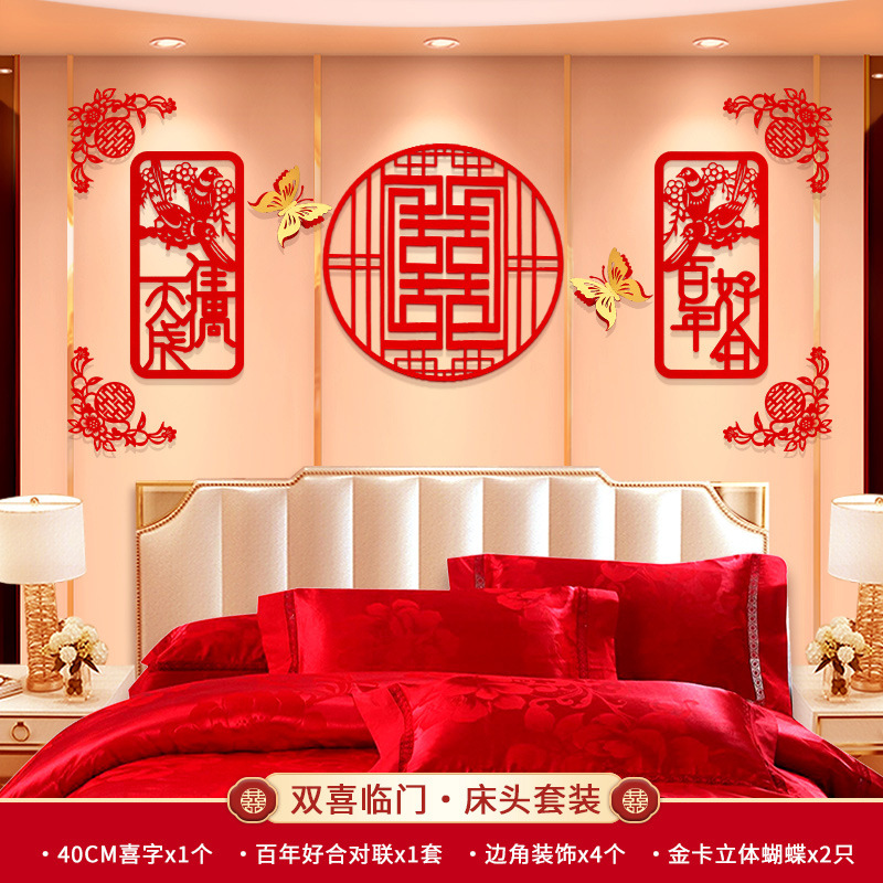 Wedding supplies wedding room bedside decoration layout woman's bedroom new house xizizi internet celebrity background wall simple and elegant