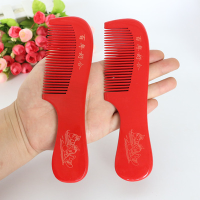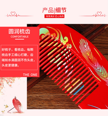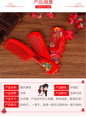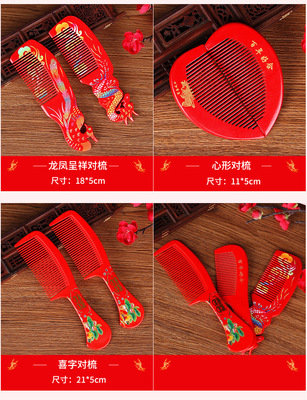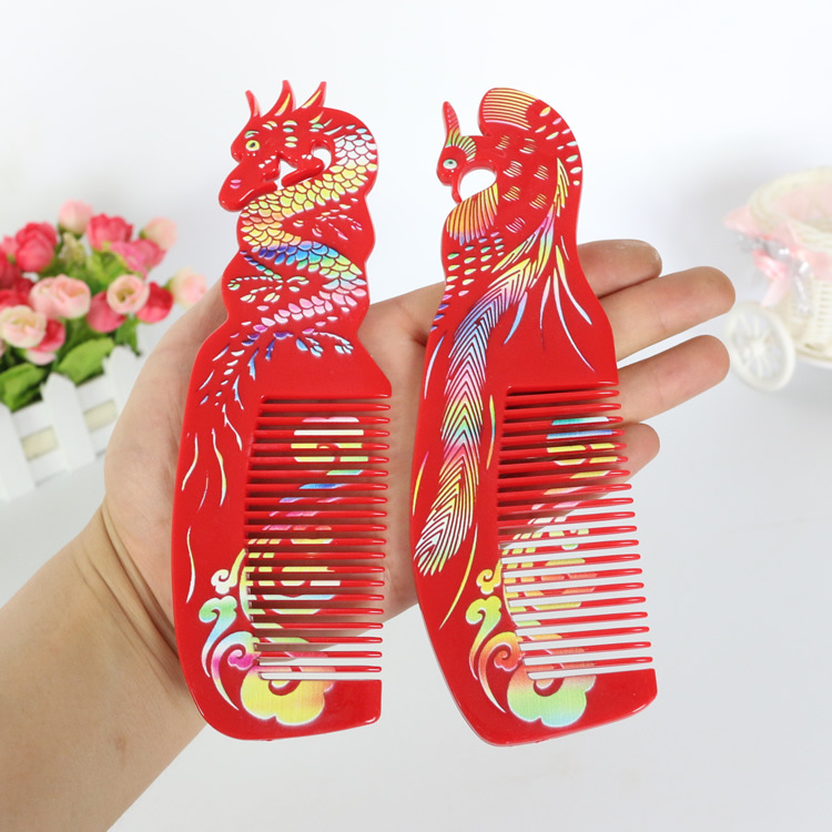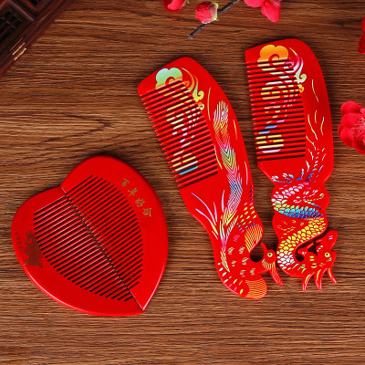 Complete Wedding Essentials: A Pair of Red Wooden Combs—Creative Wedding Comb Featuring Elegant Mandarin Ducks, Dragon, and Phoenix Designs, Perfect as Bridal Dowry Accessories