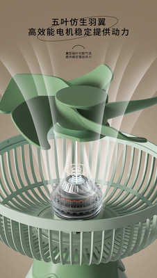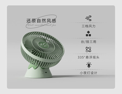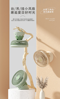 2023 New Outdoor Camping Multifunctional Night Light Hanging Portable Small Electric Fan Mini Silent High Wind Wholesale