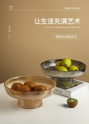 Transparent striped glass fruit plate-tall style