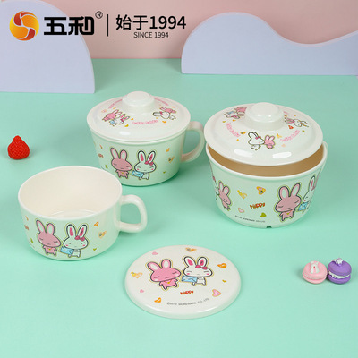 Wuhe factory direct wholesale melamine tableware imitation porcelain cup break-resistant auspicious rabbit beautiful cartoon cup children's cup