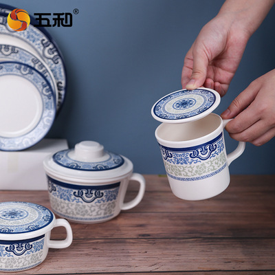 Five and Chinese-style blue and white series round and square plate and bowl set, durable for home use, food-grade pure melamine tableware
