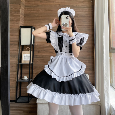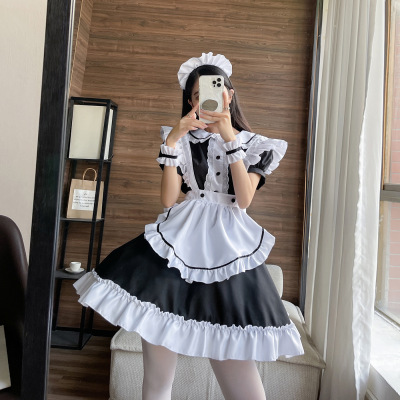 Cross-border Amazon maid maid outfit Japanese maid role play restaurant uniform lace maid short-sleeved maid