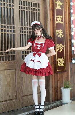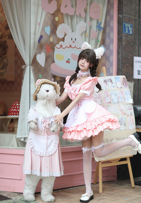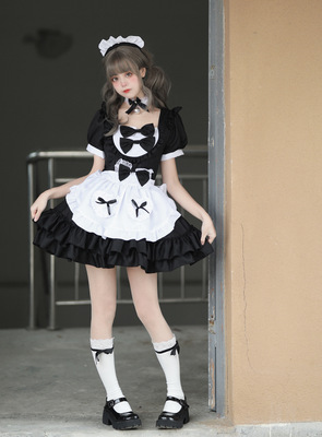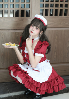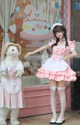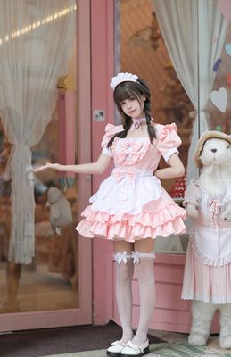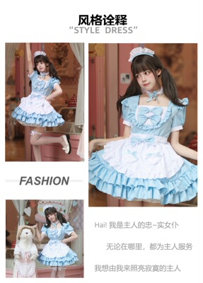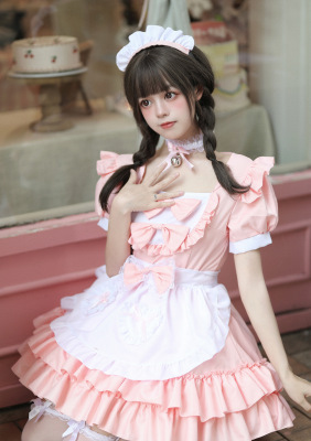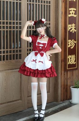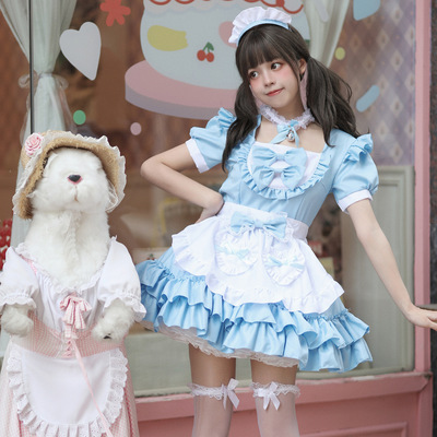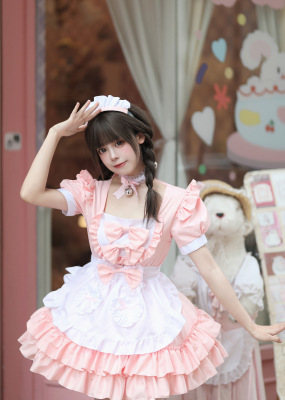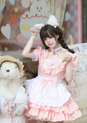 Cross-border Amazon Japanese sexy cream sweetheart maid outfit multi-color pure Lolita dress