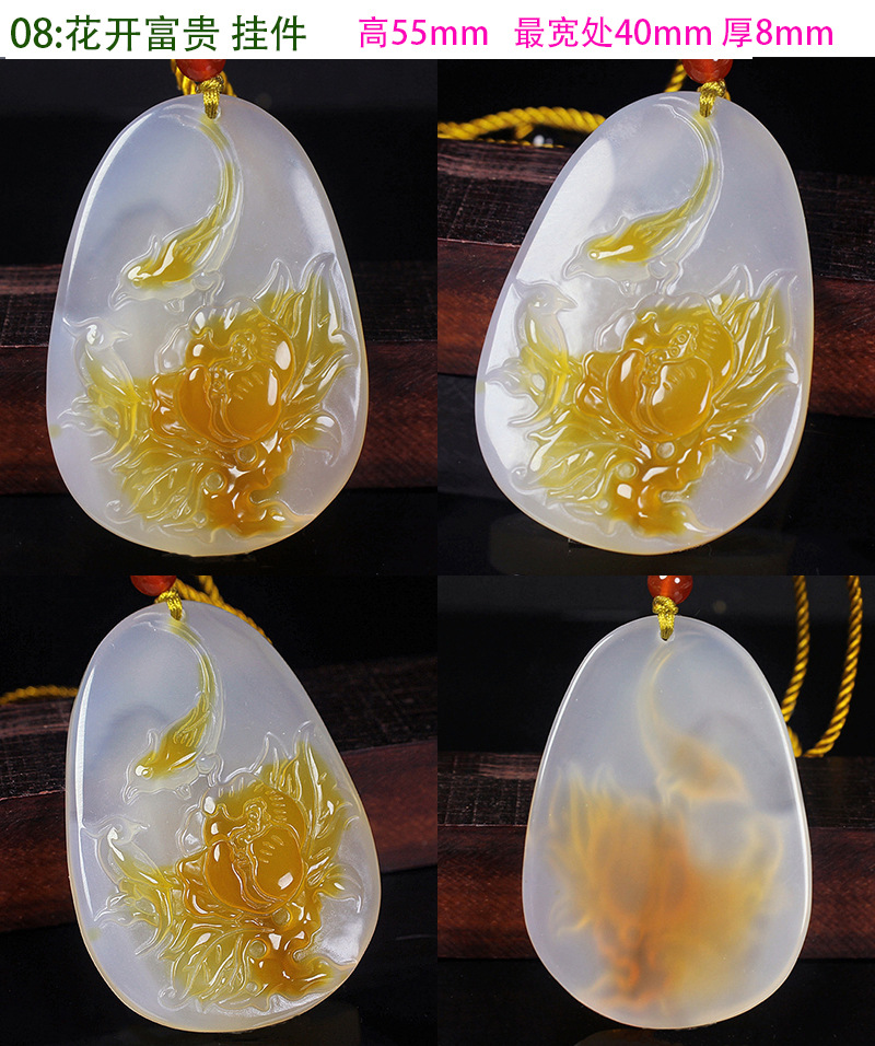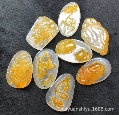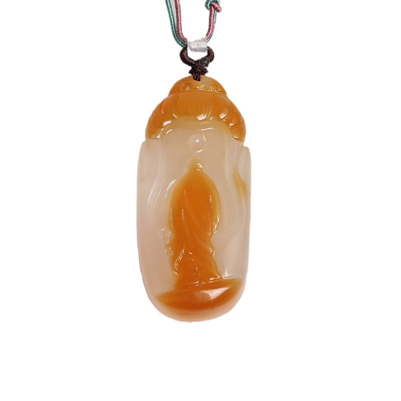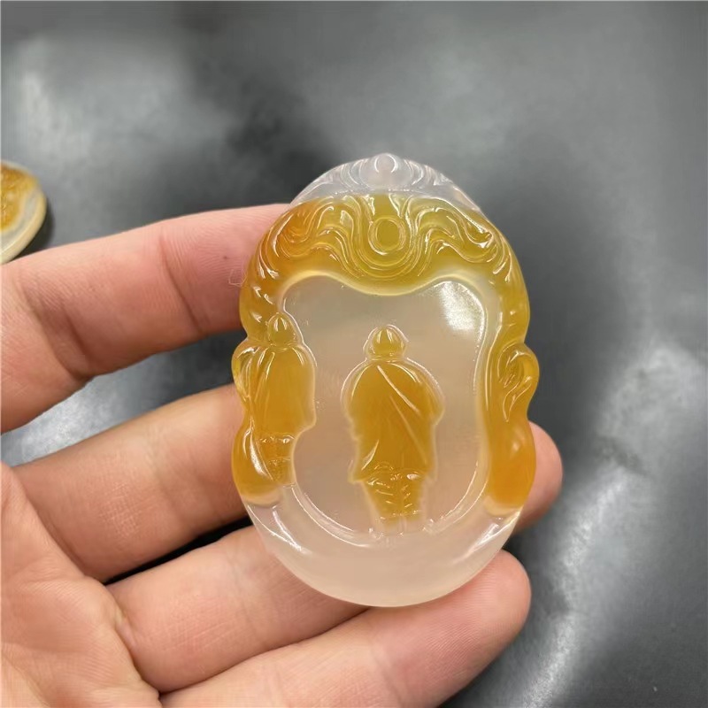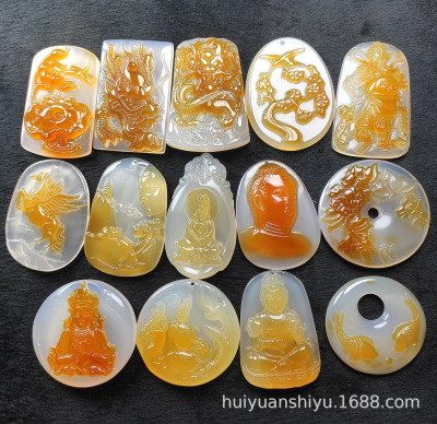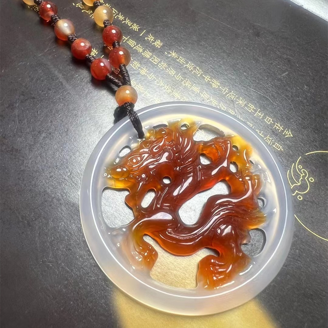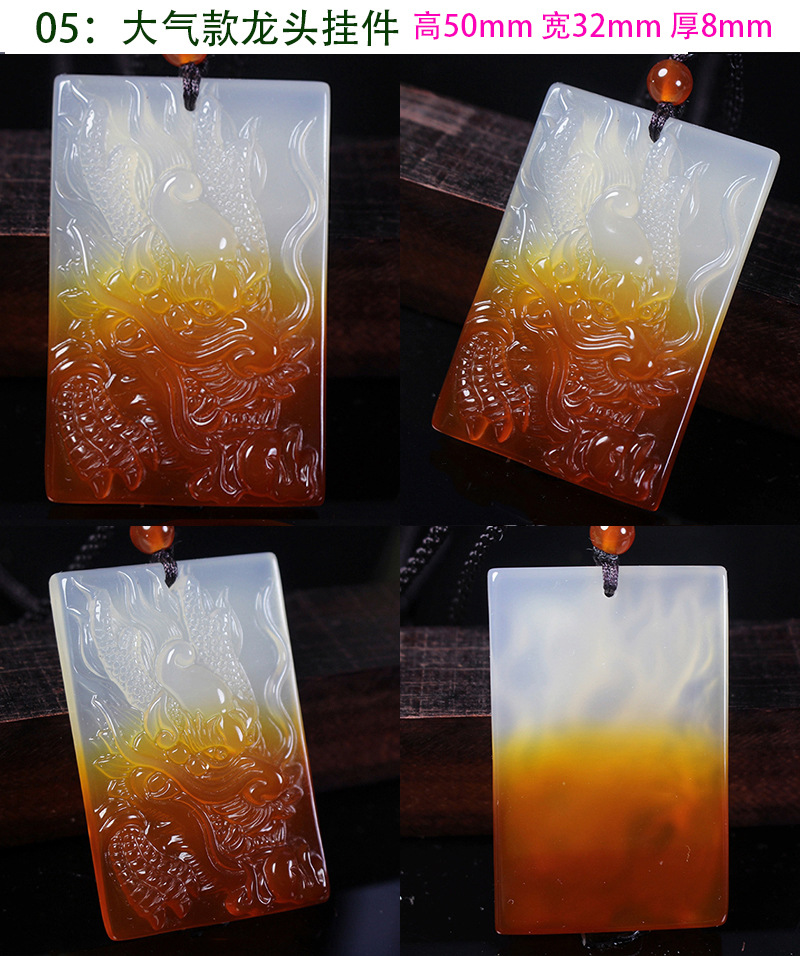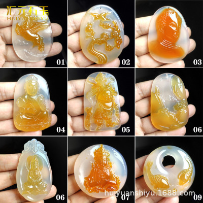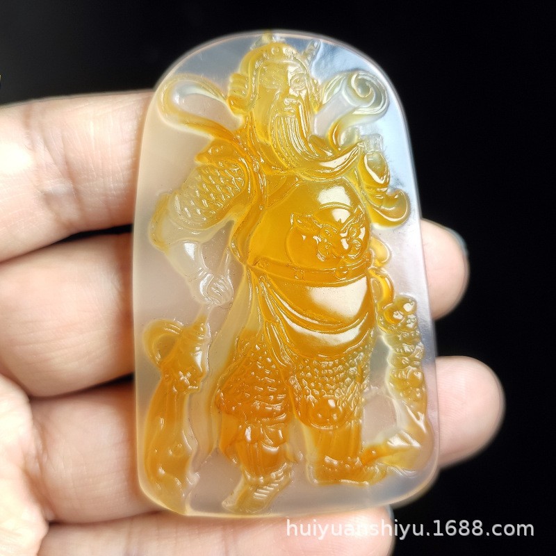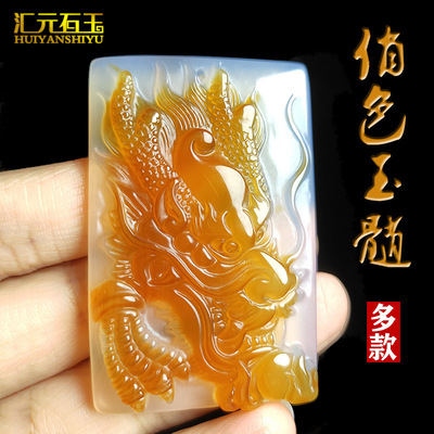 Natural Ice Clear Colorful Agate Pendant with Hollowed Skillful Colorful Agate Guan Gong Dragon Pendant with Peace Button and Chi Xiu Live Streaming Supply Source