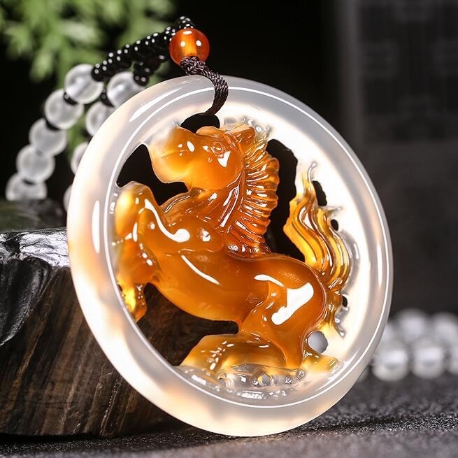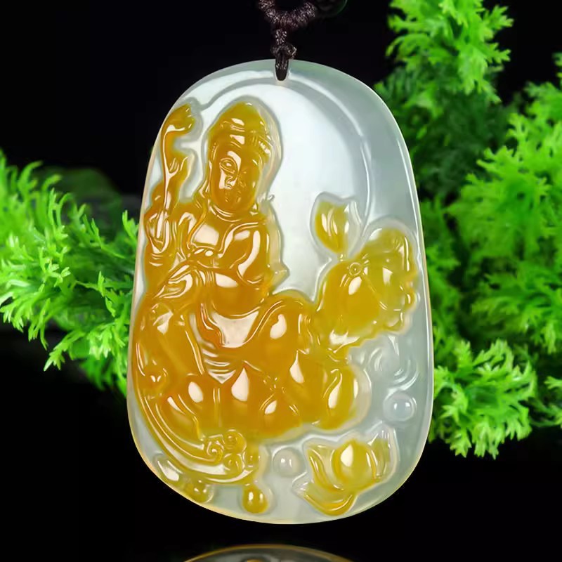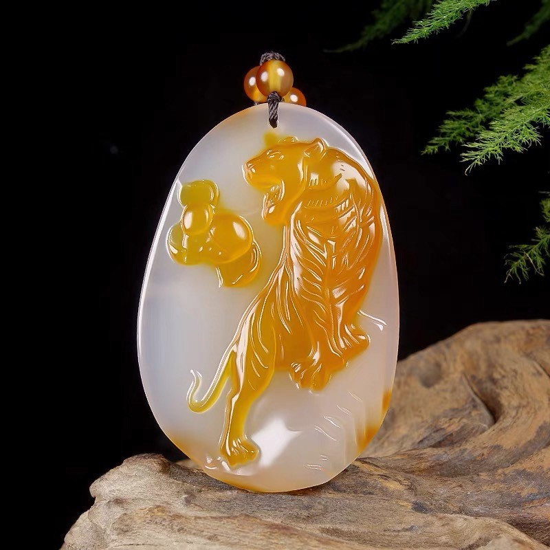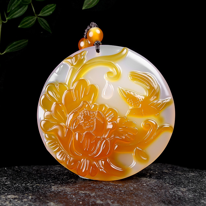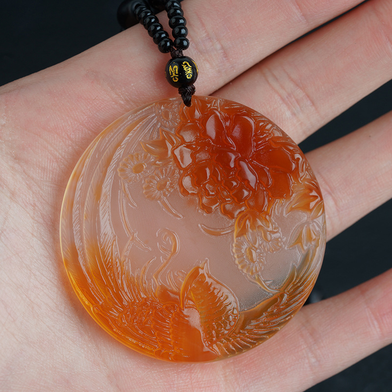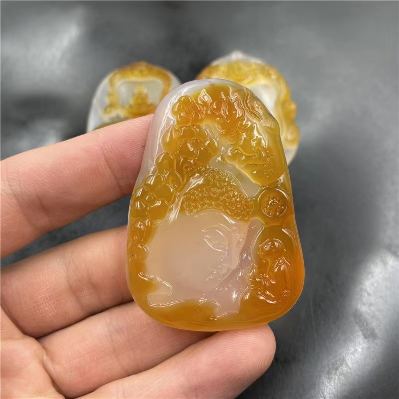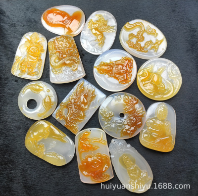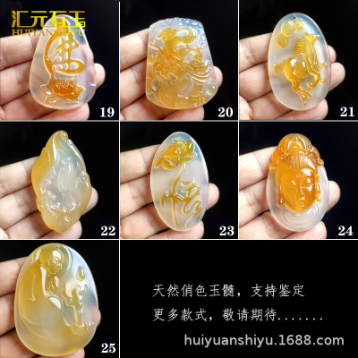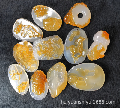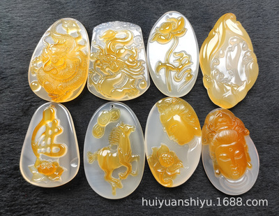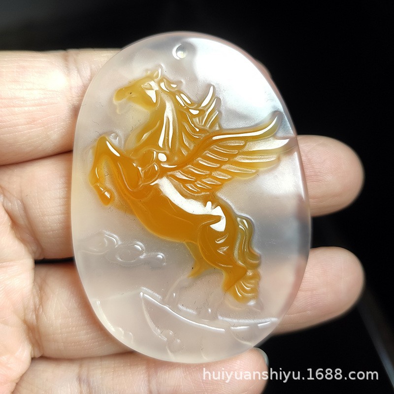 Natural Ice Clear Colorful Agate Pendant with Hollowed Skillful Colorful Agate Guan Gong Dragon Pendant with Peace Button and Chi Xiu Live Streaming Supply Source