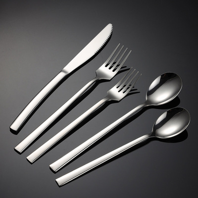 Aion 304 stainless steel Korean spoon and fork long square handle spoon fork large and small company gift tableware steak knife