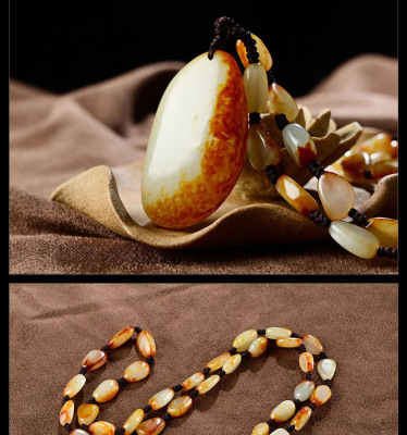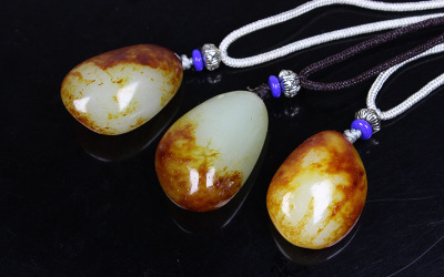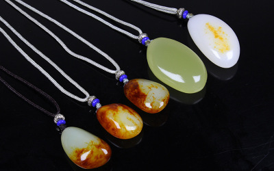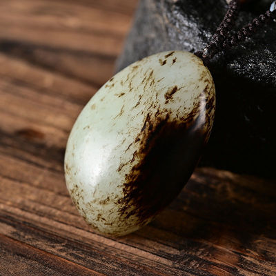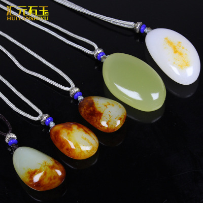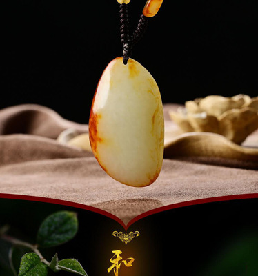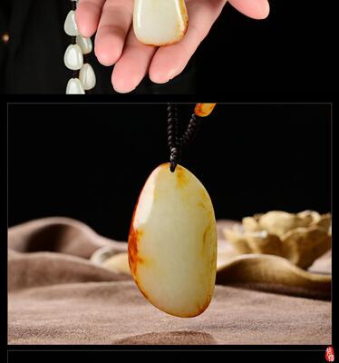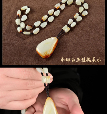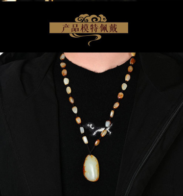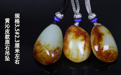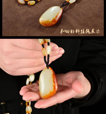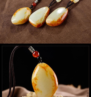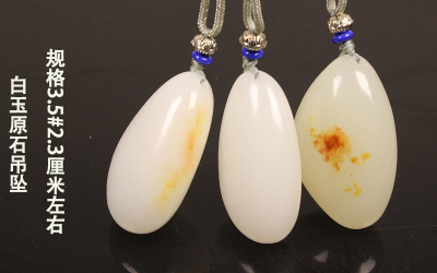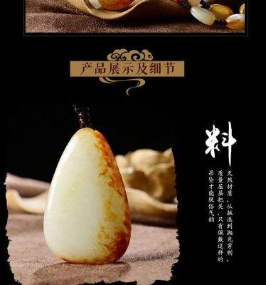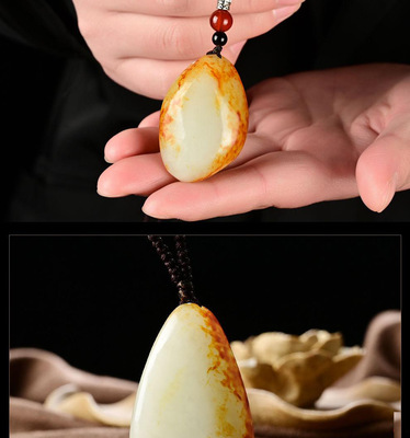 Xinjiang Hetian Jade Red Skin Seed Material Original Stone White Jade Pendant Red Skin White Jade Necklace Sweater Chain Pendant Jade Drop