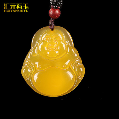 Ice type yellow chalcedony Guanyin Buddha pendant safe and wishful thinking agate pendant jade jade live broadcast supply wholesale