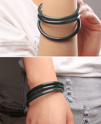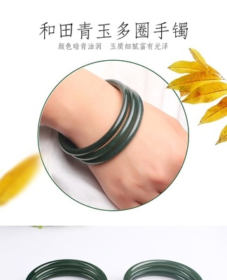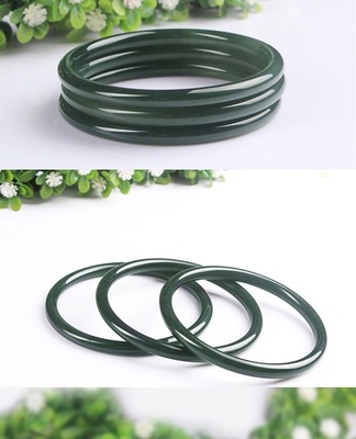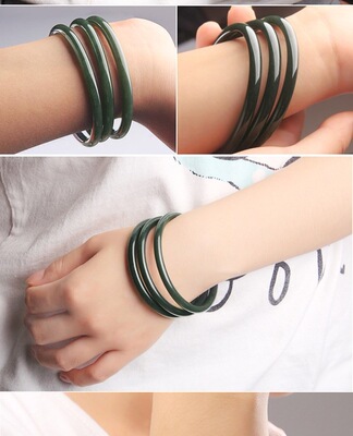 A Grade Xinjiang Hetian Jade Green Jade Rattlesnake Bead Bracelet, Slim Round Bead Bracelet with Jade Sound, Dark Green Jade Bracelet, Live Stream Style