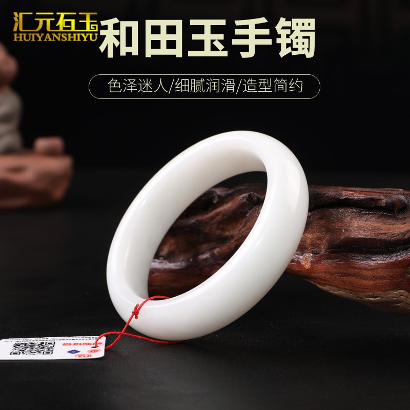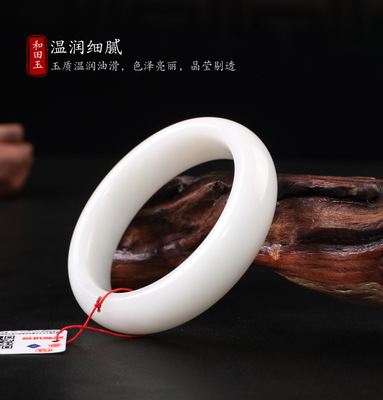 Natural Hetian jade white jade bracelet ethnic style retro jade jade jade bracelet live supply batch delivery certificate