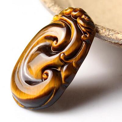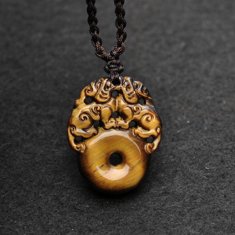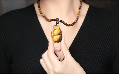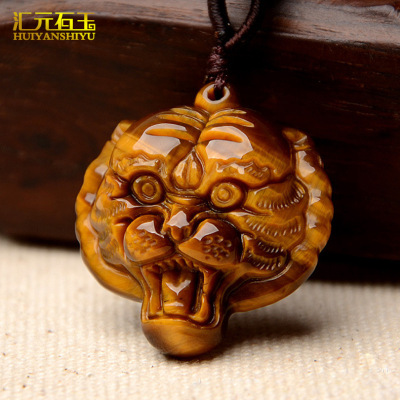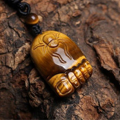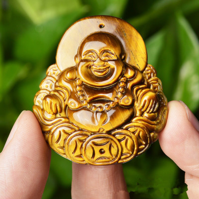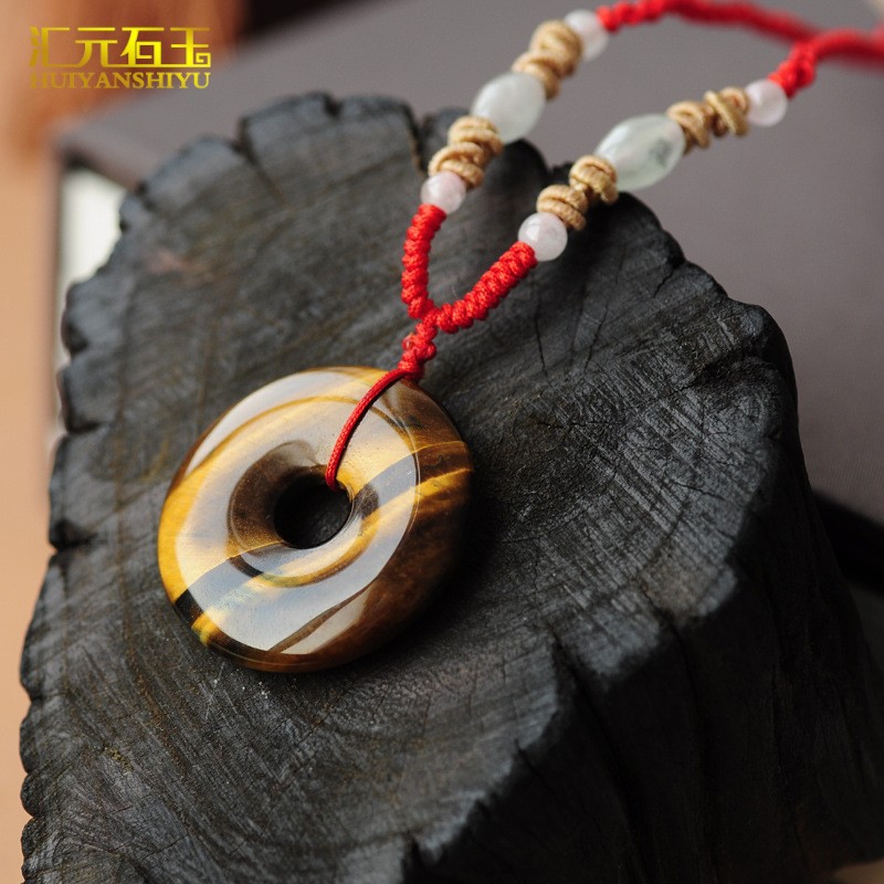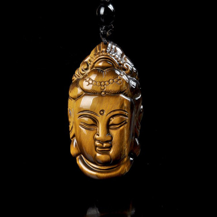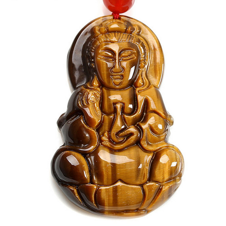 Natural Tiger's Eye Peace Buckle Guanyin Buddha Pendant, Tiger Eye & Wood-Tiger Stone Pendants, Jade Jewelry—Wholesale Supply for Live Streaming