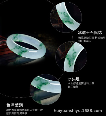 Quartzite jadeite jade banded green flower ice species bracelet three-section flower ice jade bracelet A-grade jade bracelet live streaming goods wholesale