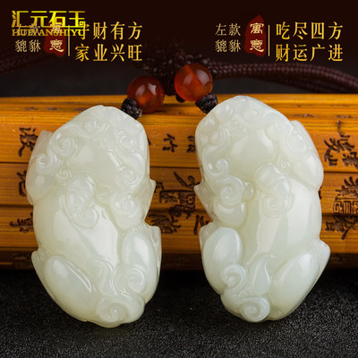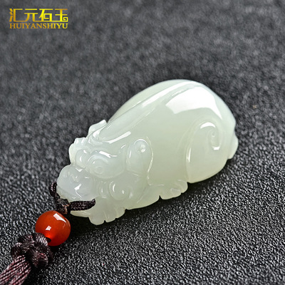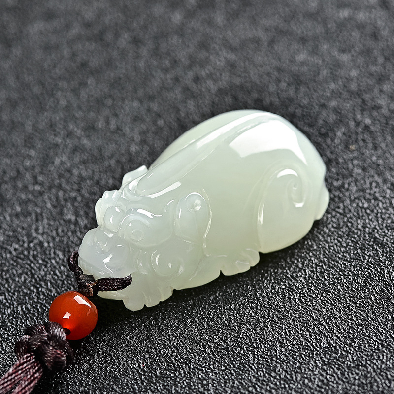 Xinjiang Hotan White Jade Pixiu Pendant, Sheep Fat Jade 3-Qian Ruyi-Style Pixiu Charm, Wholesale Pixiu Jade Pendants