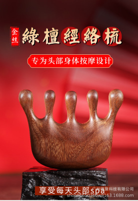 Factory Natural Green Sandalwood Comb with Five-Tooth Round Ball Acupressure Head, Sandalwood Massage Comb for Scalp and Neck, Wholesale