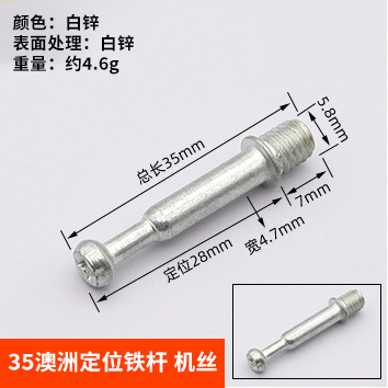 Specifications: 35mm Australian iron - thread [white zinc plated]