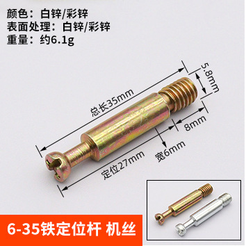 Specifications: 6*35mm iron rod-screw thread [galvanized color]
