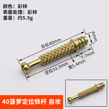 Specifications: 6*40mm iron rod-screw thread [galvanized color]