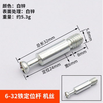 Specifications: 6*32mm iron rod-screw thread [white zinc plated]