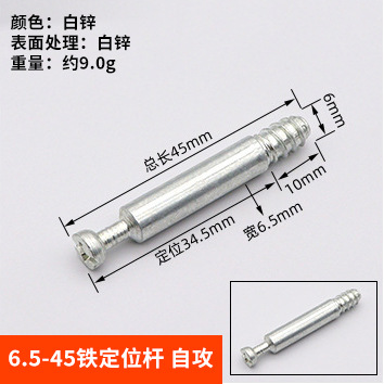 Specifications: 6.5*45mm iron rod - self-tapping [white zinc plated]