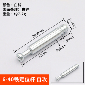 Specifications: 6*40mm iron rod - self-tapping [white zinc plated]