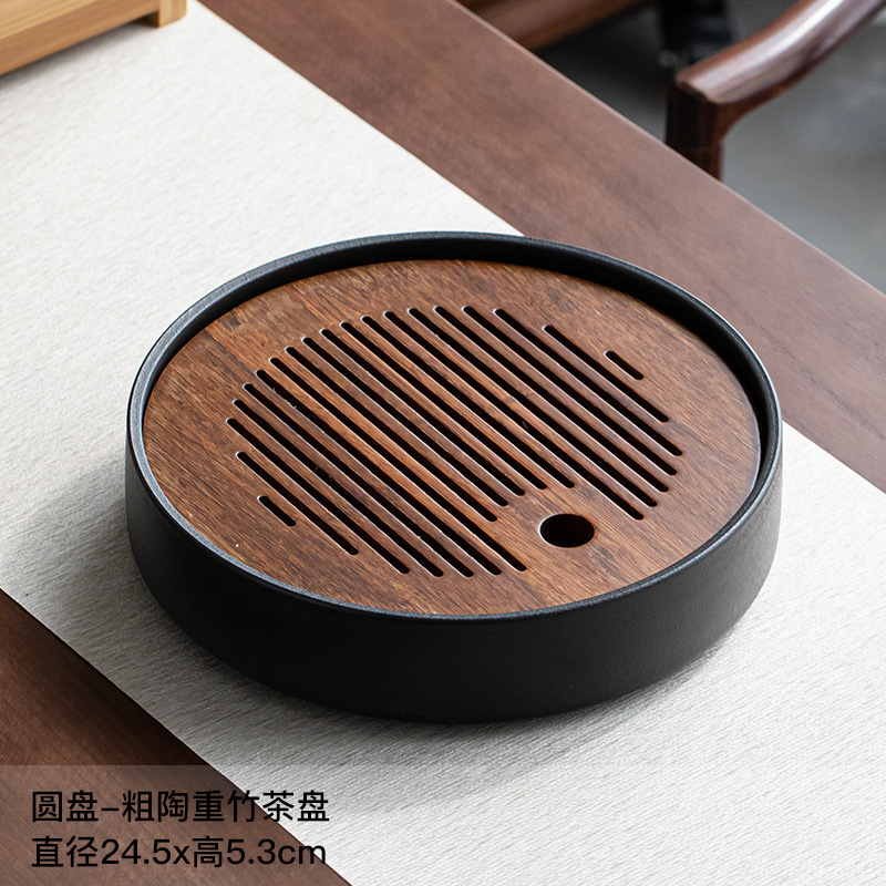 圓盤粗陶重竹茶盤