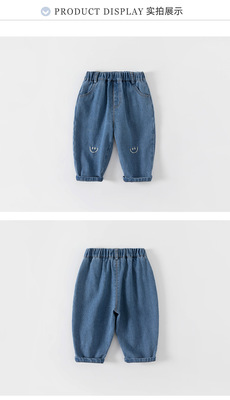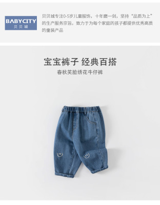 babycity boys' pants spring and autumn casual girls smiley face jeans straight pants children's pants QK82179