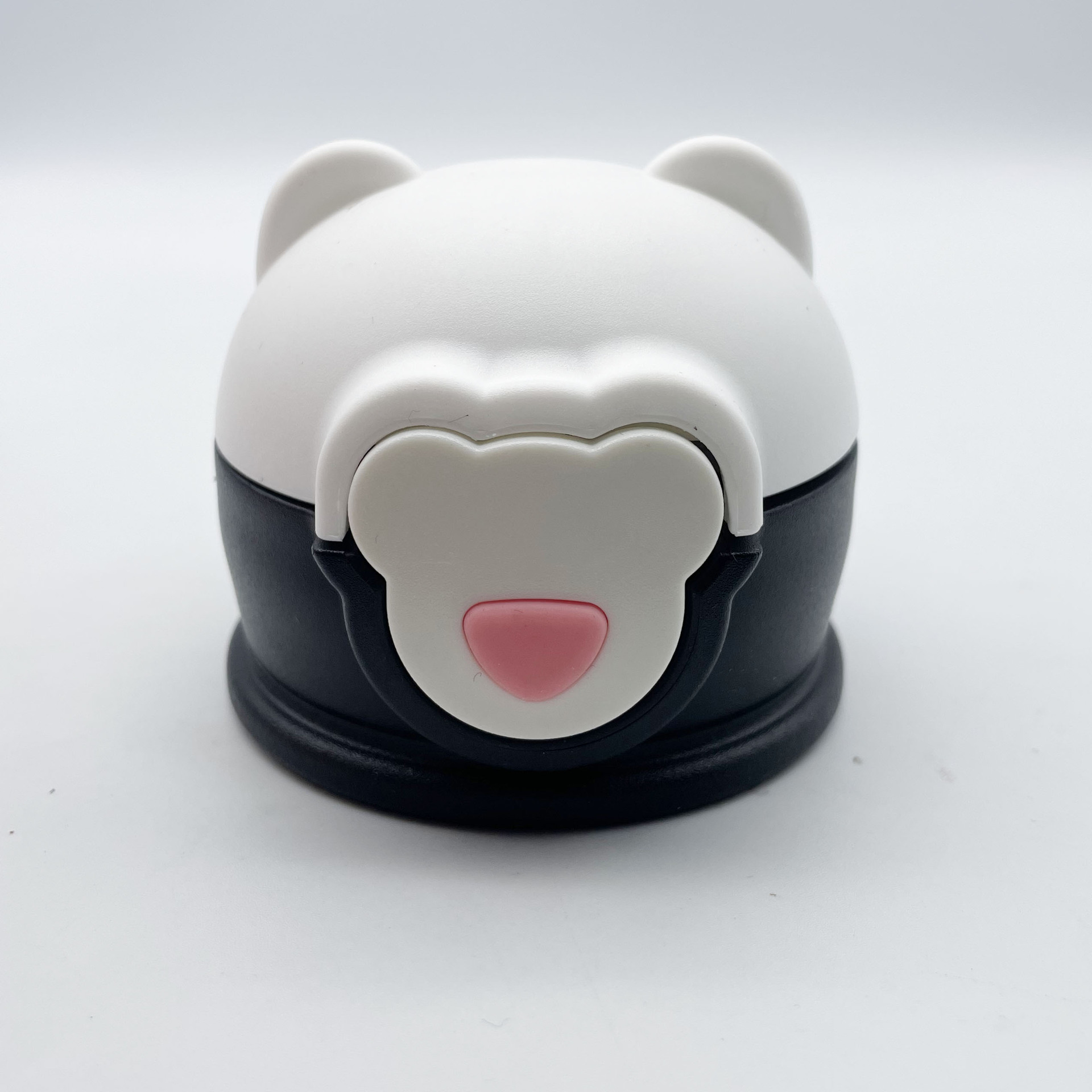 Cap with white and black colors, suction straw, white top and black bottom design