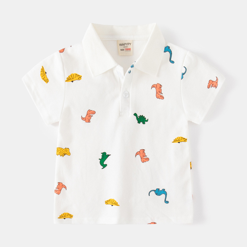 Children's short-sleeved polo shirt 2024 new Korean version boys cartoon full printed short-sleeved baby lapel top wholesale