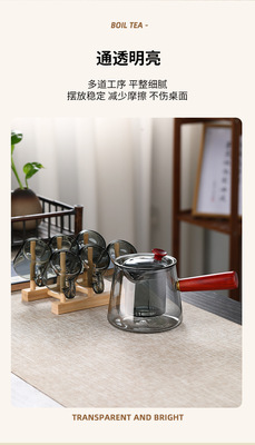 玻璃茶壺耐高溫側把泡茶單壺茶具家用木把玻璃花茶壺電陶爐煮茶壺