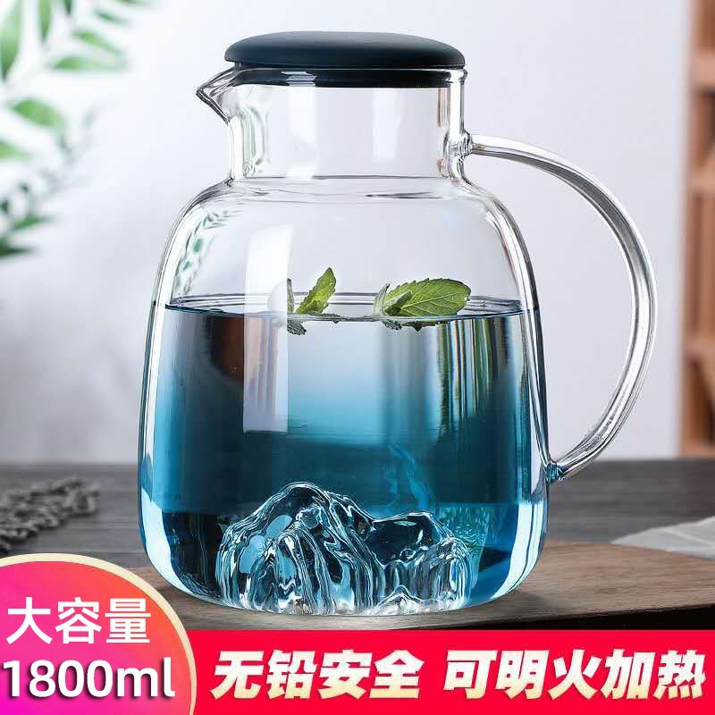 Glass Cold Water Pitcher with High-Temperature Resistance, Creative Colorful Juicer Pitcher for Home, Explosion-Proof Iced Tea Pitcher, Cup and Cup Stand Set