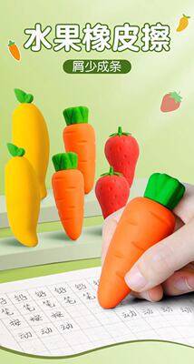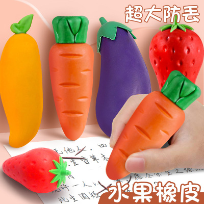 Giant Rubber Fruit Eraser for Elementary Students: Carrot and Strawberry Shaped, Pen-like Creative Eraser