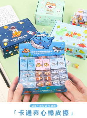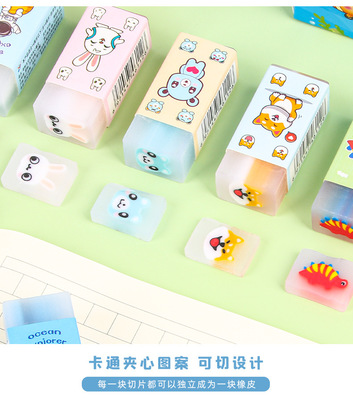 Children's cartoon-shaped eraser creative cuttable sandwich eraser for students, painting stationery supplies, eraser prize wholesale