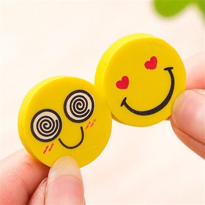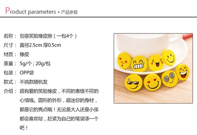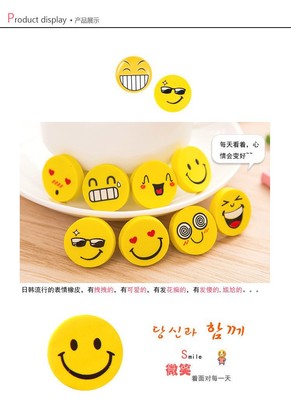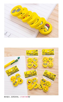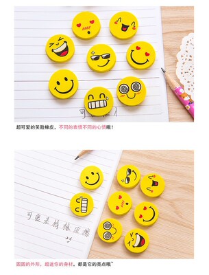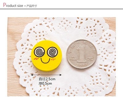 Cute smiling cartoon round eraser for kindergarten children, prize gift eraser set, wholesale