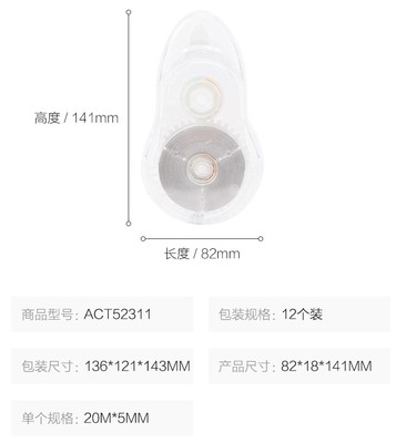 Chen Guang Stationery ACT52311 20-meter correction band, correction tape, students' correction band, transparent