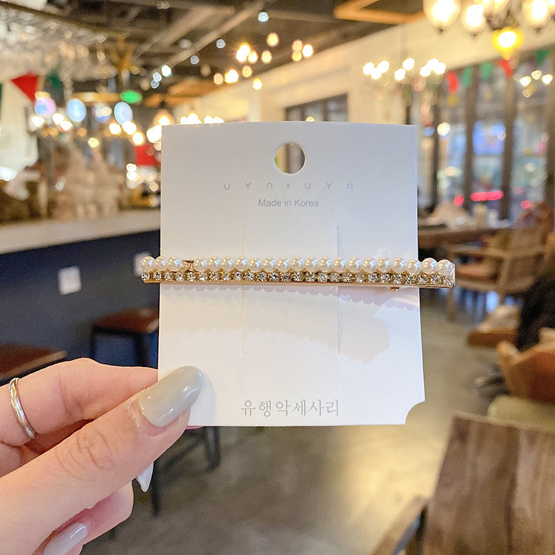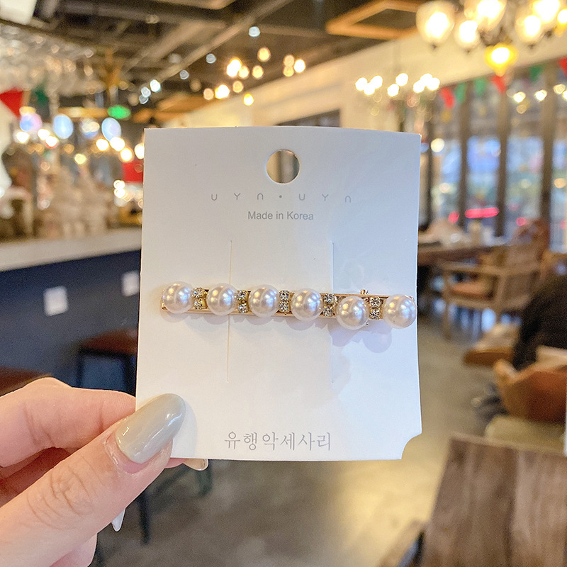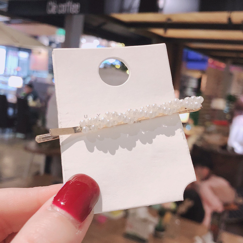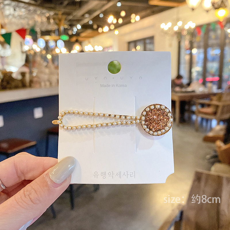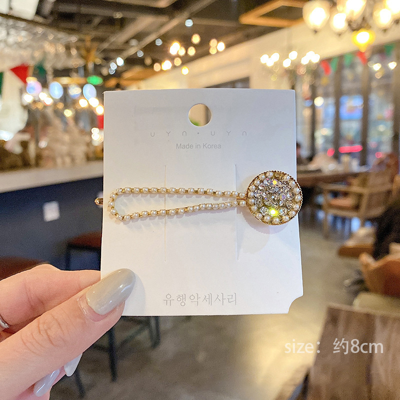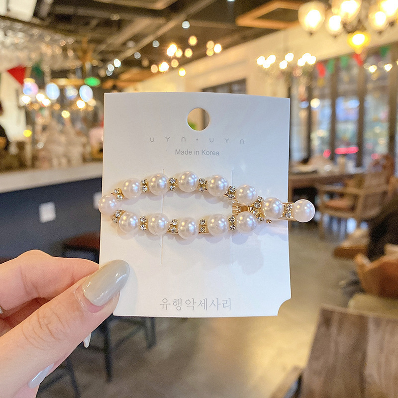 Cute pearl hairpin ins Korean rhinestone hairpin retro bangs hairpin simple love clip hair accessories wholesale