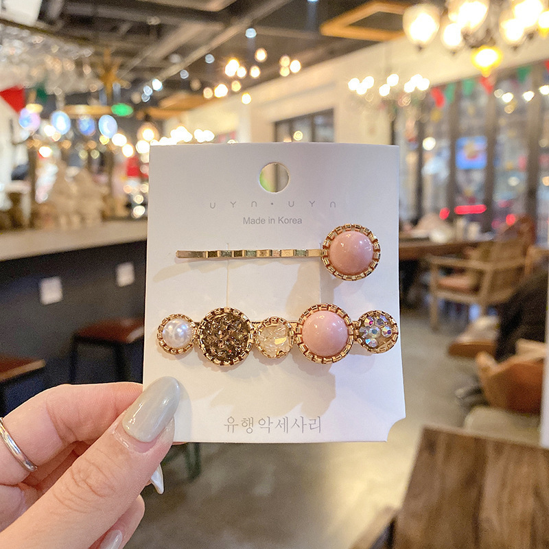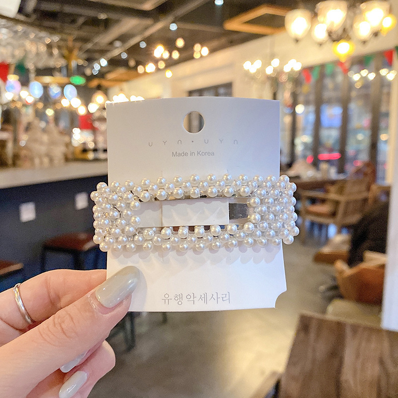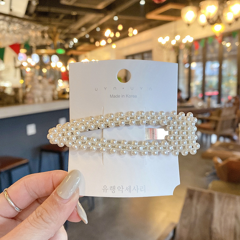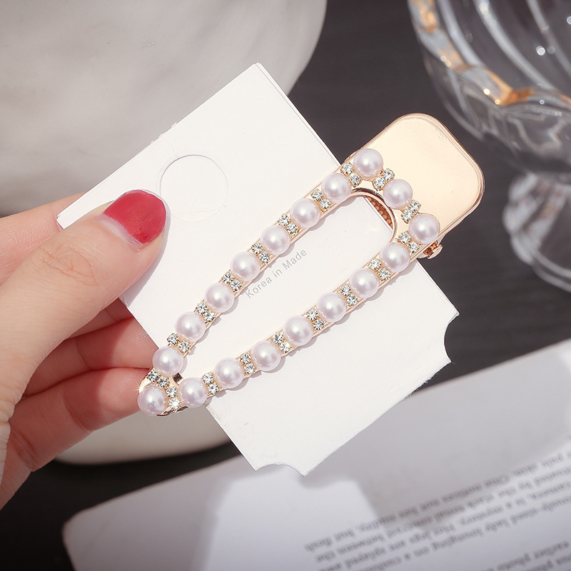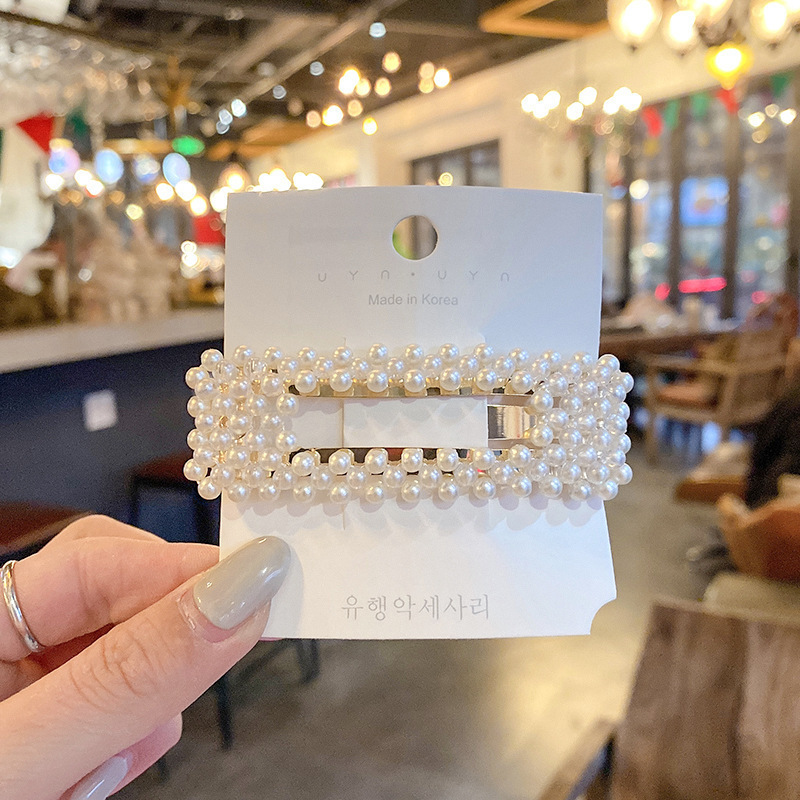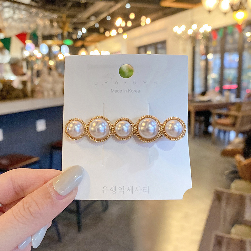 Cute pearl hairpin ins Korean rhinestone hairpin retro bangs hairpin simple love clip hair accessories wholesale