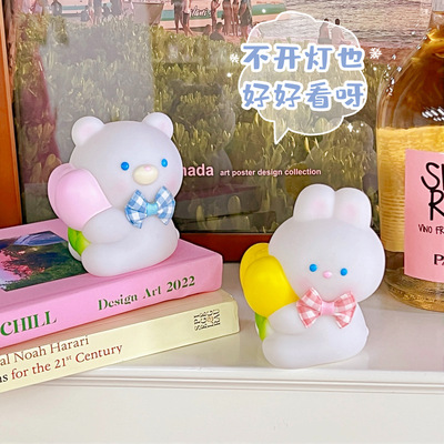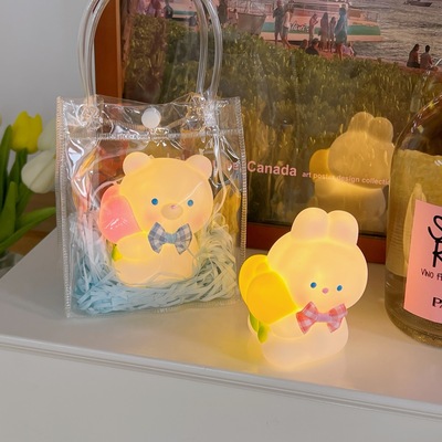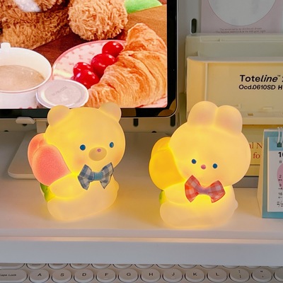 Bedside night light, sweet and cute, eye-protecting sleeping light, bedroom sleeping light, battery style, cute peach bear desk lamp