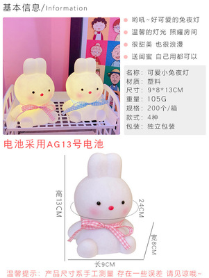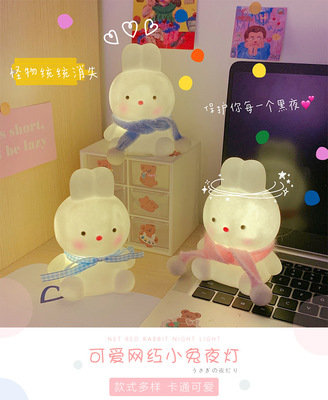 Cute internet celebrity night light unplugged girl heart cartoon creative bunny ornament bedroom bedside lamp birthday gift