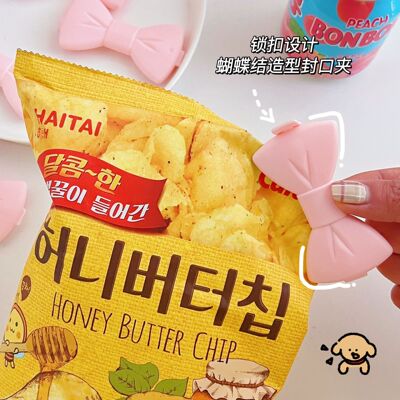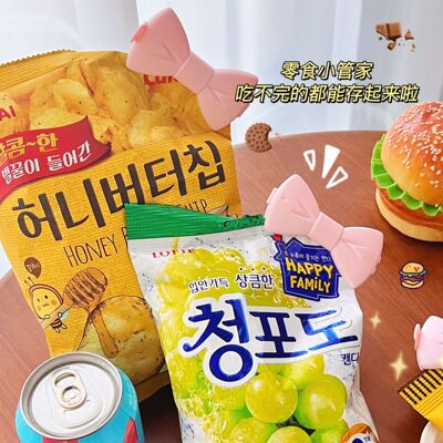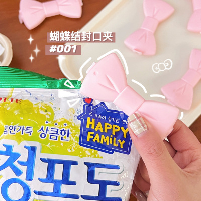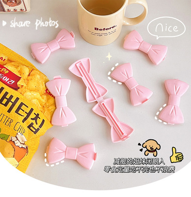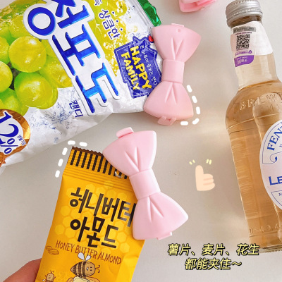 Korean ins Japanese girl cute creative pink bow snack clip storage clip small clip sealing clip
