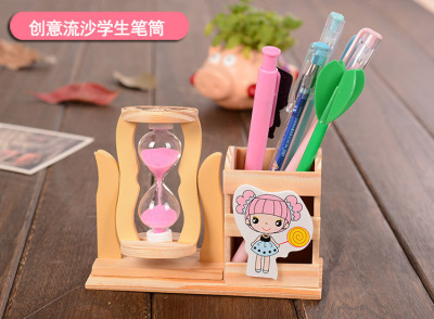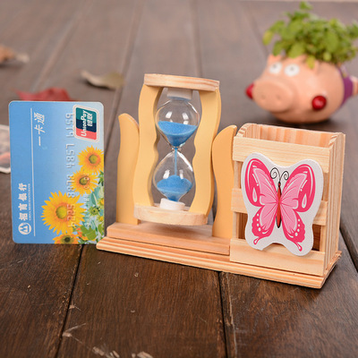 Rotatable Hourglass Pen Holder | Little Girl Butterfly Pen Stand | Office Stationery Wooden Pen Holder | Student Stationery Wholesale