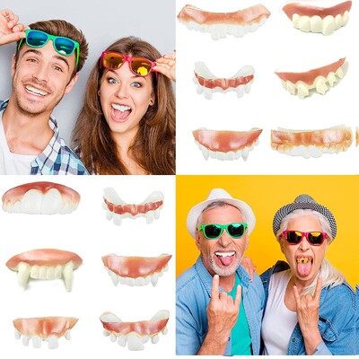 Halloween 12 types of dentures, cosplay, masquerade, trick, funny ghost festival, buck teeth, soft rubber teeth, trick props