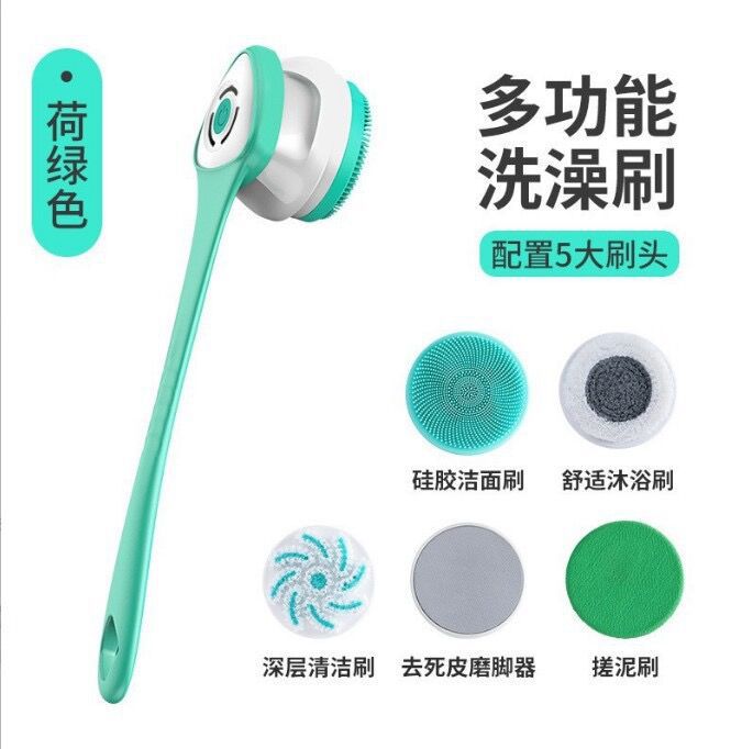 卡扣式電動沐浴刷 五刷頭電動按摩洗澡刷沐浴刷長柄搓背搓澡器洗