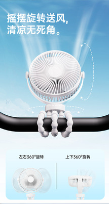 Cross-border USB Octopus handheld fan stroller can shake its head up and down small fan outdoor clip fan manufacturer