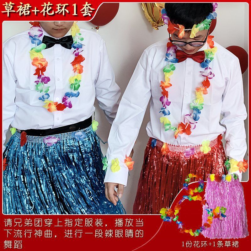 Grass skirt + flower wreath + camisole
