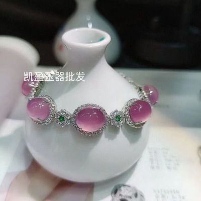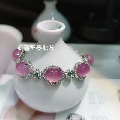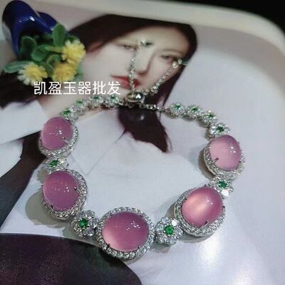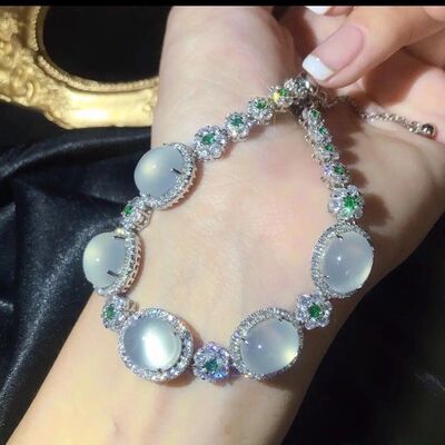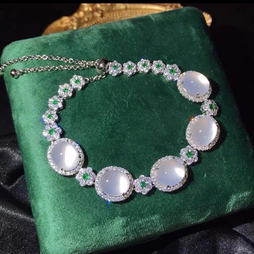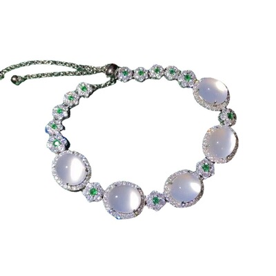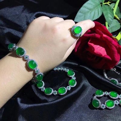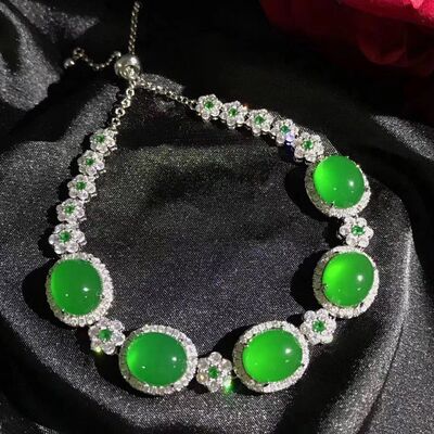 Factory Wholesale 925 Silver Plated Emerald Green Agate Full Diamond Pendant Bracelet for Women Jade Beads Necklace Accessory