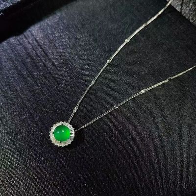 Wholesale 925 silver-plated jadeite pendant with high ice green agate, jadeite and agate lockchain pendant jewelry