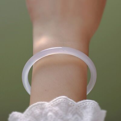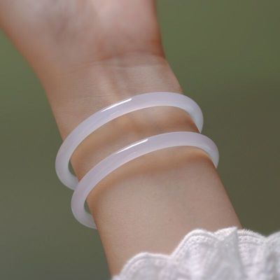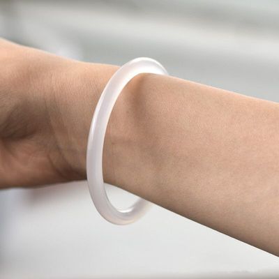 Ice white chalcedony 6mm thin round bar jingle bracelet white agate jade beauty bracelet bracelet gift live source